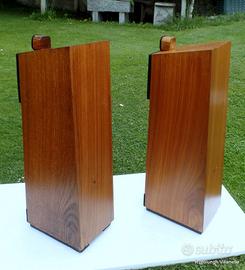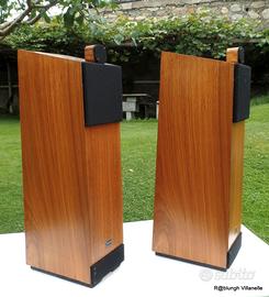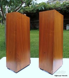 Da pavimento tre vie e due altoparlanti, in perfette condizioni in rapporto all’età, accordate in Bassreflex con un mid/Woofer Doppia bobina Focal 7C014-DBL da 179 mm con cono in carta rivestita in resina, sospensione in gomma struttura in lega leggera e fissaggio a vite BTR e un tweeter Audax da 23 mm. magnete in neodimio e cupola polimerica inserito in un pezzo di legno massello posizionato sopra al corpo principale (come in molti modelli di Jean-Marie Reynaaud, o B&W)