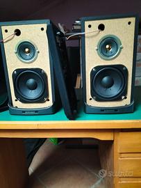 Vendo piccole casse acustiche 3 vie da scaffale o per sistemi home theater piccola/ media potenza da usarsi come surround. Marca Pioneer. Potenza 30/35 watt RMS impedenza 8 ohm, colore nero, come nuove neanche un graffio. Qualsiasi prova. Misure : altezza 31 cm, larghezza 17 cm, profondità 20 cm. Le casse sono a 3 vie, il tweeter è posizionato all'interno della griglia di protezione di nylon come si vede in foto. Il prezzo si intende la coppia. NON SPEDISCO. Solo ritiro a mano