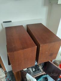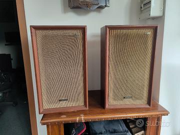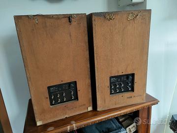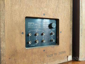 Diffusori casse acustiche Onkyo funzionanti, funzionante ogni altoparlante,membrane in buono stato non c'è da eseguire nessuna riparazione meccanica, funzionalmente sono ok, elettronica e altoparlanti originali. I difetti estetici si trovano principalmente posteriormente e qualche riparazione al mobile "fai da te" dei precedenti proprietari. Sistema a 3 vie con bass-reflex e tipo bookshelf. Periodo di produzione: 1971 - 1973. Componenti: Woofer da 20 cm (cono). Midrange da 12 cm (cono). Tweeter a cupola moltiplicata per due