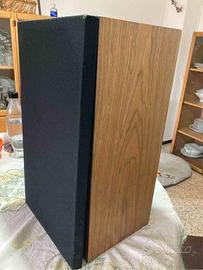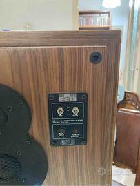 Vendo Casse Acustiche bookshelf ESB 45LD in buone condizioni estetiche e ben funzionanti; A 3 vie, Made in Italy con componentistica italiana (Ciare), woofer da 8" e unità medio alti a cupola morbida su unica flangia ad 8; completamente originali (unica cosa sostituita sono i morsetti a molla usati all'epoca con morsetti che accettano connettori a forcella o spinotti a banana. Casse da 100w su 8 Ohm, ma ne digeriscono anche di più; sostituita la sospensione in foama dei woofer un paio di anni fa; impiallacciatura in legno; comprensive di supporti in legno; dimensioni: 32x26x55 cm., peso circa kg. 19 caduta escluso supporti. Gli atoparlanti utilizzati erano stati prodotti dalla ciare su specifiche dell'allora progettista di ESB (ing Renato Giussani) e non sono mai apparsi nel catalogo della stessa Ciare. Visto i pesi e le dimensioni preferirei non spedire onde evitare per l'acquirente costi di spedizione e di imballo