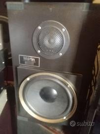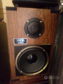 Casse Acustiche Marca Americana Martin, modello Gamma 208. Prodotte nel 1976 da Martin Speakers Mickleton NJ Ocala FL. Vintage. Poco conosciute da noi erano e sono popolarissime in Francia. La peculiarita' era che ognuna veniva costruita e assemblata completamente a mano coi migliori prodotti possibili. Dietro oltre i fogli del tested, vi e' nei contatti un variatore per i toni alti dei Twteer. Sistema a due vie, dimensioni 26 x 45 x 24 cm, potenza dischiarata 40 Watt per canale ma essendo con me da diversi anni sopportano molto di piu' senza problemi. Purtroppo i Woofer erano a fine corsa ormai asciutti e mancando totalmente gli originali per ricambio, e' stato necessario sostituirli con altrettanti di pregio. La resa sonora e' stata subito superiore. Sarebbe preferibile la prova e il ritiro a mano a mio domicilio, nel caso bisogna spedirli, dovendo fare 2 pacchi separati la spesa e' di 40 euro essendo aumentate le tariffe postali dal 1 aprile. Altrimenti la ditta privata che verrebbe a prenderli direttamente a casa, ne vorrebbe 70 e non e' accettabile per un acquisto.