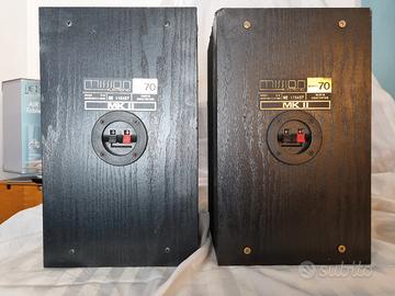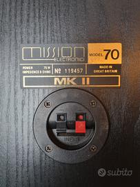 coppia di casse MISSION Electronics mod.70 MKII Potenza max75Watt impedenza 8homs in legno color nero, originali Made in UK. Ottime condizioni acustiche. Vendo a poco costo perché una cassa ha difetti estetici, vedi foto.