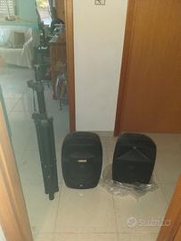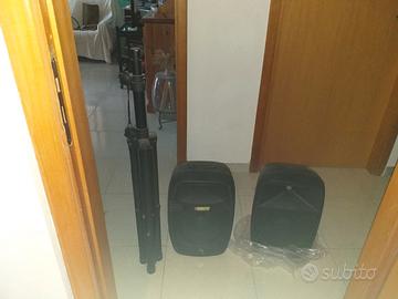 Causa non utilizzo, vendo n° 2 casse acustiche, di cui: 1 cassa acustica modello RIDEM DA 300 WATT, come da foto, 2° cassa modello ITALIAN STAGE DA 300 WATT DELLA PROEL; comprensive di n° 2 TREPPIEDI; Vendo inoltre consolle MIXER DJ MODELLO AM 220 DELLA PHONIC, comprensiva di microfoni karaoke PROEL. e cavetteria varia. tutta l'attrezzatura è in ottime condizioni come da foto, usate pochissime volte per qualche serata in famiglia. Per ulteriori informazioni chiamare ore pasti il n° 331/7484423. PREZZO TRATTABILE.