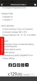 Vendo per errato acquisto, coppia di casse acustiche. 6 mesi di vita non le rientrano per processato tempo di reso, usate 1 minuto, praticamente nuove come si vede dall'imballo e dalle istruzioni nemmeno aperte. Acquistate a 258,00 euro vendo per immediato realizzo entrambe a 130, praticamente 1 gratis.