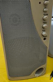 Casse adatte a pc ma anche altri dispositivi audio. Le ho provate con uno smartphone e funzionano. Hanno qualche segno del tempo (ingiallimenti, macchie e una incrinatura visibile in foto).