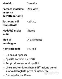 Vendo casse Yamaha nuove mai accese, ancora imballate €260 la coppia.