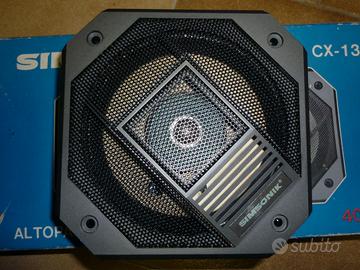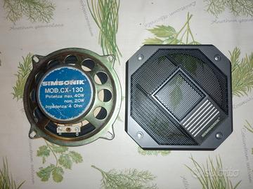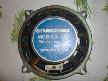 Vendo coppia casse acustiche vintage per auto, marca SIMSONIK mod.CX-130, a 2 vie coassiali, sospensione pneumatica, potenza 40 watt, mai utilizzate, imballo originale.