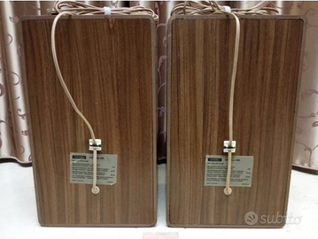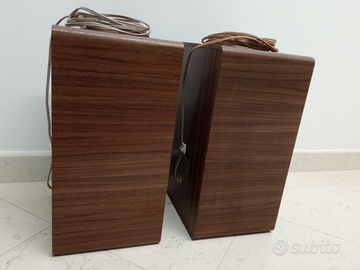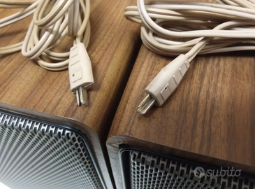 Casse acustiche altoparlanti a due vie Grundig Box 400. Provenienti da mia collezione privata. Suono spettacolare, pulito, ottima dinamica. Modello sempre più arduo da reperire in queste condizioni. Sorpassano in qualità i più moderni diffusori da migliaia di euro. Complete di fregio originale, cavi originali e connettori originali. Chi desidera visionare un video delle casse in funzione mi può contattare in privato. Leggeri segni del tempo, com' è normale che sia.