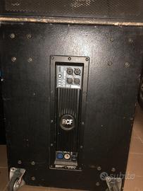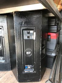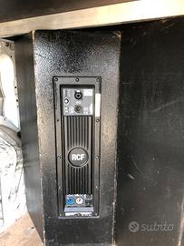 Vendo casse Rcf composte da due sub modello 4 PRO 8003 AS active potenza 1000 watt e due satelliti NX M15-A attive potenza 750 watt complete di stantivi per posizionare satelliti sul sub e cavi di collegamento xlr cannon e 220 volt