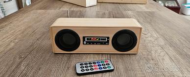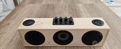 come da foto, sono casse amplificate autonome, ricaricabili mediante alimentatore usb 5 volt, radio dab con stesso sistema di ricarica, e collegamento bluetooth alle casse amplificate, giradischi con stesso sistema, con collegamento bluetooth alle casse.