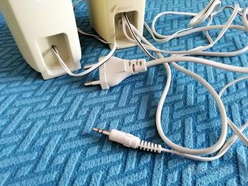 Piccole casse Amplificate con cavi incorporati adatte per PC / radiolina ecc.. Plastiche e tasti interi solamente il bianco si è ingiallito non incide sul funzionamento. Guardare foto per condizioni e misure. Vige la regola visto e piaciuto no perdi tempo GRAZIE se da spedire solo tramite poste italiane e accetto solo bonifico bancario o ricarica Cell NON CHIEDETEMI ALTRE FORMULE. Voglio specificare che la spedizione costerebbe più dell'oggetto.