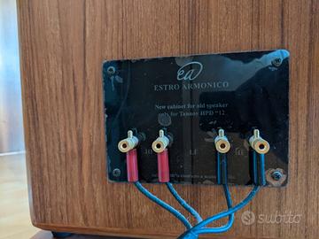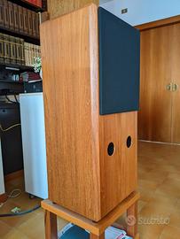 Vendesi coppia di casse artigianali in teak. Progetto Estro Armonico. Altoparlanti Tannoy (da sostituire guarnizione). Altezza 85, larghezza 38, profondità 32 cm