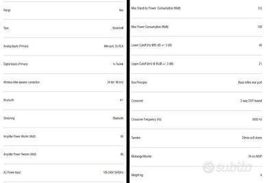 Diffusori attivi Dynaudio Xeo 10, alluminio nero spazzolato e griglie magnetiche. Potenza 65 watt per ogni driver (65 watt per ogni tweeter e 65 watt per ogni woofer), numerose recensioni in rete e sul sito ufficiale Dynaudio. Ingressi in linea (RCA) per CD o altra fonte, ingresso ottico per collegamento diretto alla tv, mini jack, bluetooth. Telecomando. Garanzia ufficiale fino a fine 2030 attribuita dalla casa madre ad ogni singolo diffusore e riferita alle singole matricole registrate. Doppia scatola originale. Spedizione a carico dell'acquirente.