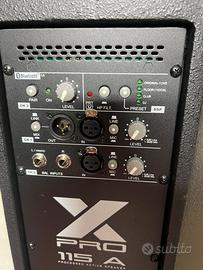Vendo per passaggio a sistema superiore coppia di diffusori attivi FBT ProMaxX 115A (woofer da 15" e driver da 1.4"). Le casse sono state utilizzate con estrema cura, sempre trasportate nelle loro custodie e mai portate a clipping. Caratteristiche Principali: • Potenza: 900W RMS per cassa (600W LF + 300W HF) – Totale 1800W. • SPL Max: 133 dB (spinta incredibile anche all'aperto). • Processore DSP: 6 preset originali FBT per adattarsi a ogni ambiente (DJ, Vocal, Monitor, ecc.). • Design: Box in polipropilene leggero e ultra-resistente, ideale per il trasporto. • Qualità: Componentistica B&C (il top del settore). Condizioni: • Estetica: Ottima, solo qualche piccolo segno di normale utilizzo. • Funzionamento: 100% perfette, disponibili per qualsiasi prova presso il mio domicilio. • Inclusi nel prezzo: Cavi di alimentazione originali. Custodie originali