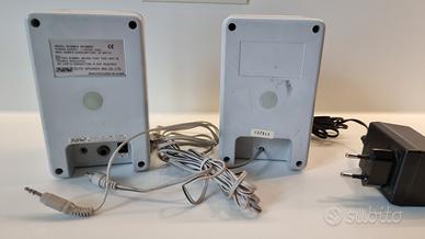 Ottime casse attive per PC dotate di amplificatore interno. Le casse posso raggiungere la potenza di 12 Watts che riproduce ottimamente suoni e musica (anche di film). Si allacciano facilmente a qualunque dispositivo di audio in uscita tramite connettore jack.