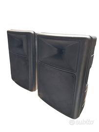E' una cassa attiva full range, molto maneggevole che offre un suono molto chiaro con un’ampia dispersione e distorsione minima. Il tutto in un box veramente compatto. Questo piccolo modello a 2 vie può tranquillamente competere con i modelli più grandi grazie al suo cono da 12” e al suo driver a compressione da 1” caricato a tromba, sapientemente integrato nello chassis della cassa. Il risultato è veramente ottimo, distorsioni al minimo e una risposta sonora La cassa è dotata di molti punti di rinforzo che le conferiscono un’ottima resistenza e rigidità. La griglia frontale, molto resistente, offre grande protezione anche in condizioni di utilizzo estreme. Inoltre il disegno asimmetrico è studiato anche per un utilizzo da monitor di palco. Due punti di aggancio integrati, uno sopra e uno sotto, ne consentono l’aggangio a flying bar. L’amplificatore interno a 2 vie offre un ingresso XLR. Inoltre totalmente protetto contro cortocircuiti , surriscaldamento e sovralimentazione. Il trasformatore toroidale ha una protezione elettronica interna auto resettabile che automaticamente disconnette l’alimentazione in caso di sovralimentazione o surriscaldamento. Un circuito di limiter ottico lineare anche fuori dall’ascolto in asse. che utilizza un algoritmo di compressione “soft” previene dal clip.