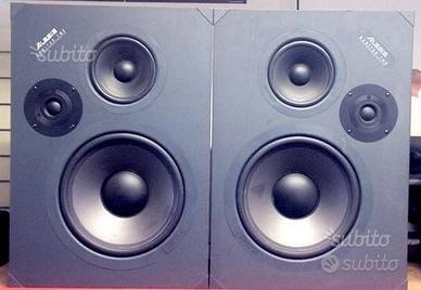 Questi monitor di riferimento da studio di registrazione, della metà degli anni '90, sono piatti e incolori nel suono, così che qualunque segnale venga loro inviato, è esattamente ciò che viene ascoltato. Hanno un design a tre vie e 4 Ohm con un cabinet sul retro. Gli armadi sono costruiti in gomma dura per non essere riflettenti quando le onde sonore lo colpiscono. I monitor sono piuttosto grandi e pesanti, quindi la spedizione sarà piuttosto costosa: per questo è preferibile il ritiro a mano. L'uso pratico di questi è nello studio di registrazione, tuttavia, funzionano alla grande quando sono collegati a uno stereo di casa o all'home theater. I woofer sono da 10" , i mid sono da 5" , i tweeter Silk sono da 1" ciascuno. I bassi arrivano fino a 35 Hz - i medi e gli alti sono puliti e naturali. (come i monitor da studio di registrazione dovrebbero essere) . Nessun problema, nessun danno estetico, funzionano perfettamente.