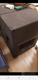 "Impianto casse audio professionali concerto" 2 casse grandi amplificate (una da revisionare) + 2 spie amplificate. Completi anche di cavalletti per alzarle da terra e i cavi prolunga elettrici e audio.