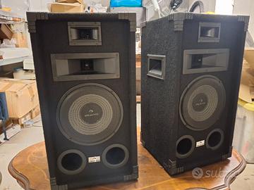 Vendo coppia di diffusori audio passivi Auna PA-800, ideali per sistemi hi-fi, home audio o utilizzo in piccoli eventi / prove in locali. Caratteristiche tecniche: Modello: Auna PA-800 Tipologia: Diffusori passivi a 3 vie Potenza: 400W (picco) Woofer: 20 cm per bassi profondi e corposi Tecnologia Bass Reflex (condotto posteriore) per una resa ottimale delle basse frequenze Tweeter e midrange integrati per una resa audio bilanciata su tutto lo spettro sonoro Cabinet robusto e resistente, finitura in nero Condizioni: Usate ma tenute con cura, perfettamente funzionanti., esteticamente buone e soprattutto suonano benissimo.
