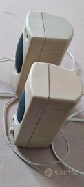 Funzionalità: Sono casse amplificate per PC, dotate di un jack per collegare le cuffie e controlli fisici per il volume e l'accensione.