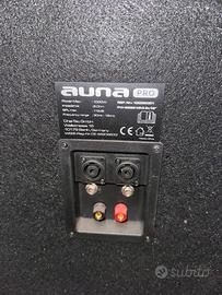 Auna Pro PW-2222 MK2 – Specifiche tecniche ⚙️ Struttura •Tipo: cassa passiva (serve amplificatore esterno) •Sistema: 3 vie (bassi + medi + alti) •Configurazione: •2 woofer da 12” (30,5 cm) •1 midrange a tromba •1 tweeter piezo Potenza •500 W RMS •1000 W max (picco) 👉 Nota importante: i 1000 W sono “di picco”, quindi la potenza reale continua è 500 W. Come suonano (in pratica) ✔️ Pro: •Molto potenti per il prezzo •Buone per DJ, feste, karaoke •Facili da trasportare rispetto ad altre PA Trasporto a carico dell’acquirente