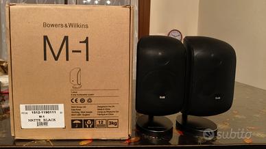 Vendo coppia di diffusori da scaffale della Bowers & Wilkins B&W modello M1 in colorazione nera. Usati pochissimo. In eccellenti condizioni sia estetiche che funzionali. Completi di scatolo e staffe a muro.