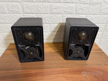 Vendo coppia di casse Marchio: Braun Modello: L300/8 Caratteristiche: Questi sono altoparlanti vintage Braun L300/8, un modello compatto a 3 vie progettato da Dieter Rams in Germania. Caratteristiche: Diffusore passivo con potenza di 50W a 8 Ohm. Dimensioni: Circa 15,9 cm L x 25,4 cm A x 17,8 cm P. Design: Presenta un tweeter montato su una staffa al centro del woofer da 4,5 pollici e una grande cupola per i medi. Stato: Oggetto da collezione, prodotto negli anni '80 Condizione: usati funzionanti Paese di fabbricazione: Germania.