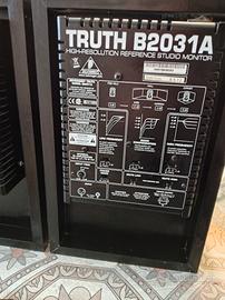 casse beringer Truth b203 1a perfettamente funzionanti.eccellenti diffusori studio monitor da 265w x 2 .bi amplificate. le vendo per non utilizzo.usate veramente poco. sono casse a 5 stelle il peso è di 30 kg.quindi e da metterci d'accordo per la spedizione