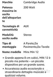 Vendo per inutilizzo, come nuove, 2 casse Cambridge Minx Min 12, 200w, perfette, colore bianco, complete di staffe a muro.