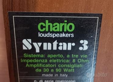 Vendo coppia di casse Chario Syntar 3 in perfetto stato funzionanti foam nuovi tutti e quattro i woofer e. 250 non trattabile non spedisco