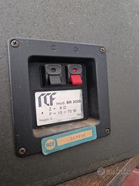 Coppia diffusori acustici a due vie, RCF serie BR2028, in perfetto stato estetico e funzionale, appena fatti ribordare da tecnico specializzato. Type: Passive Positioning: Bookshelf Enclosure: Sealed Box (cassa chiusa) Way system: 2 Nominal Impedance: 8 Ohm Frequency Response: 40 - 20000 Hz Sensitivity: 88 dB Dimensions (W x H x D): 25 x 35 x 26.2 cm Cedo per passaggio a diffusori da pavimento. Visto il peso e l’ingombro, non spedisco.