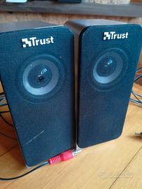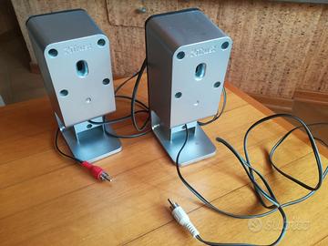 Vendo per inutilizzo casse diffusori autoparlanti marca Trust funzionanti provenienti da un impianto abbinato a subwoofer, lunghezza del cavo di ogni singola cassa di circa 1 metro, segni di usura come si evince dalle fotografie. Scrivetemi per maggiori informazioni o fotografie. Consegna a mano o spedizione.