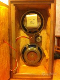 Rarissimi diffusori a due vie con reflex passivo Toshiba SS 25 di fine anni 60 perfettamente funzionanti. Woofer Al.Ni.Co. radiatore passivo e tweeter a compressione. Altissima efficienza. Case in discrete condizioni.