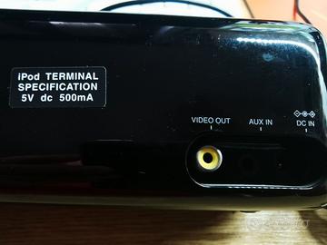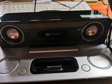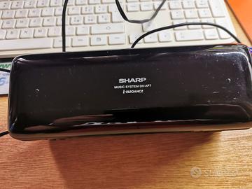 Sharp DK-AP7N-S 2.1 Canali 4.4 W del 2009 e Sony iPod WalkmanNWZ-E443. DKAP7N è un sistema di speakers compatti e portatili, con subwoofer e tecnologia HDSS Sound.Questi diffusori sono compatibili con tutte le generazioni iPod e iPhone per quanto riguarda le operazioni di riproduzione e carica batteria. Inoltre, l'uscita video permette la visione di foto e filmati sullo schermo dei tv. L’alimentazione con pile stilo consentono un utilizzo fuori casa e una facile portabilità. Ridottissime le dimensioni: Il design è elegante: linee morbide e superfici lucide. Potente sistema che riproduce e carica fino a iPod di quarta generazione. Subwoofer integrato con tecnologia HDSS, terminale di uscita video. Riproduce qualsiasi altro formato di MP3 tramite jack Aux-in. Funzionamento a corrente o a batteria. Canali di uscita audio: 2.1 canali, Potenza nominale RMS: 4,4 W, Impedenza: 47000 Ω. Unità driver: 3cm. Batteria: Alcalina, Tipo: AA, Voltaggio della batteria: 1,5 V. Peso: 576 g. Prodotti compatibili: iPod, MP3, Dimensioni (LxPxA): 198 x 69,8 x 77 mm, Porte I/O: 1 x jack Aux-in. Vendo a € 39