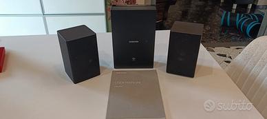 Vendo kit originale Samsung SWA‑9000S, composto da 2 casse posteriori + modulo wireless compatibile con numerose soundbar Samsung della serie Sound+ e Q. Prodotto ideale per ottenere un vero surround posteriore senza dover stendere cavi dalla soundbar. Caratteristiche principali Sistema 2.0 canali con ricevitore wireless dedicato Connessione senza fili alla soundbar (solo alimentazione per i satelliti) Compatibile con molte soundbar Samsung (es. HW‑Q80R, HW‑N850, HW‑K850, MS550, MS650, MS750, NW700, Q800T, Q70T) Frequenza 20–20.000 Hz, colore nero, design compatto Perfetto per home cinema: effetto surround reale e immersivo Stato: ottimo, perfettamente funzionante Completo di: modulo wireless, cavi di alimentazione, casse posteriori