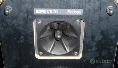 Casse 2 vie 60 W anni '90 in buono stato con suono potente e deciso. Dimensioni 35 (H)x22(P)x23(L). Woofer diam. 15 cm, tweeter a tromba da 10 cm. Foam perfetto. Angoli rinforzati come da foto. Ideali per studio di registrazione. Mancano le griglie frontali. Preferibile ritiro diretto previo ascolto.
