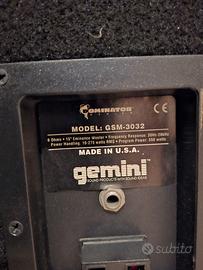 Vendo per inutilizzo sistema audio completo composto da coppia di casse passive Gemini GSM 3032 e amplificatore Gemini XPM 600.