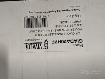 Tweeter a cupola 2,5 cm in neodimio, seta e titanio, orientabile (in casi di installazioni su posizioni non ottimali permette di dare direttività alle alte frequenze non penalizzando la qualità dell'ascolto).
