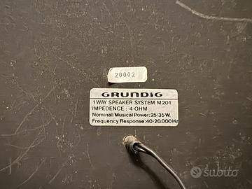 Vendo casse Grundig M 201 fullrange Potenza 25/3W inpedenza 4 ohm Frequenza 40-2000Hz Perfettamente funzionanti Misure Altezza 46 cm Larghezza 25cm Profondità 23 cm Piccoli segni dovuti l’ ettá Mando video con perfetto funzionamento Posso spedire dopo l’accordo