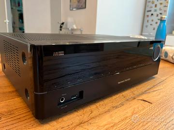 Diffusori Home Theater Harman , ricevitore audio video AVR 161s, subwoofer Indiana Line MIO SUB, piedistalli, cavi, manuale, telecomando e accessori, alcuni mancanti.