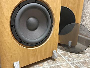 Sistema a 3 vie con woofer laterale, reggono potenze elevate.