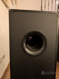 Le casse sono datate ma perfettamente funzionanti. A livello estetico presentano segni di usura dovuti al tempo: in particolare, come mostrato nelle foto, il rivestimento (impiallacciatura) in un bordo posteriore è saltato e in altri punti si sta leggermente staccando.