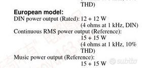 Coppia Casse HiFi System Sony con potenza RMS 15 + 15 W, 4 ohms.