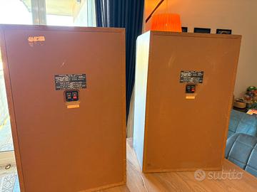 Vendo coppia di diffusori Hitachi HS-33, autentico hi-fi vintage giapponese anni ’80, costruzione solida e suono potente e caldo. Caratteristiche tecniche •Impedenza: 8 Ohm •Potenza nominale: 70W •Potenza massima: 140W •Sistema a 2 vie con: •Woofer grande ad alta escursione •Tweeter a tromba (horn) •Controllo frontale livello tweeter regolabile •Made in Japan ✅ Perfettamente funzionanti •✅ Woofer originali in buono stato •⚠️ Cupola centrale leggermente ammaccata (solo estetica, non influisce sul suono) •⚠️ Segni di usura sul mobile (visibili in foto) •⚠️ Parte posteriore con segni del tempo Nel complesso condizioni buone per l’età Qualità audio Suono tipico vintage: •bassi profondi e corposi •medi caldi •alti brillanti (regolabili) Perfette per: •vinile •musica rock, jazz, anni ‘70/‘80 •impianti hi-fi vintage Note •Vendute in coppia •Nessuna modifica, tutto originale •Preferibile ritiro a mano (sono pesanti) Prezzo 90 € trattabili