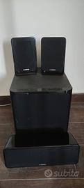 Sistema home theatre yamaha Centrale + 2 Frontali con aste in acciaio come supporto + 2 Surround + Subwoofer + Potenza: 100 W Tutto in perfette condizioni