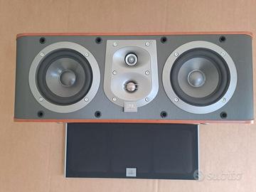 Vendo causa inutilizzo Casse acustiche JBL legno di ciliegio e vinile, perfette in tutto, come da foto: 2 Es 80 frontali, 2 Es 30 posteriori, 1 Es c25 ch centrale, ed infine un subwoofer Es 150 pch 250mm. Sono sempre state in una sala cinema.