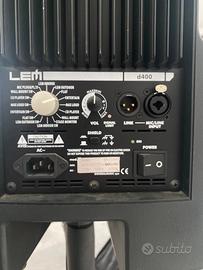 Coppia di casse lemd400 + mixer lem rd 82fx , cavalletti supporto , cavi collegamento e microfono.