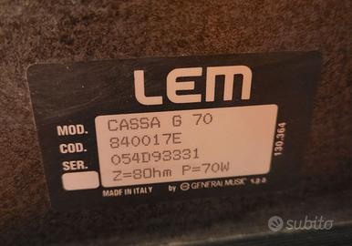 Casse acustiche LEM G70 grey series non amplificate per musica dal vivo, molto morbide, le facevo suonare con un amplificatore da 30+30 watt. Sospensioni woofer perfette, predisposizione per asta sul fondo. Dato il peso (10 kg l'una circa) preferirei ritiro a mano a Venezia, Mestre o zone limitrofe. Se l'annuncio è presente sono ancora disponibili.