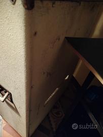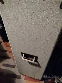Casse acustiche della famosa ditta LOMBARDI. Sono mancanti i 4 coni da 28 cm in ognuna, mentre e' presente il tweeter a tromba centrale. Sono da completare e riverniciare.....i segni del tempo si vedono, ma con un buon progetto di restauro faranno ancora la loro figura. Viste le dimensioni , solo ritiro di persona. 98x71x35. maniglie laterali x trasporto. molto robuste.