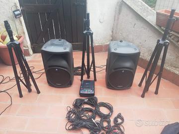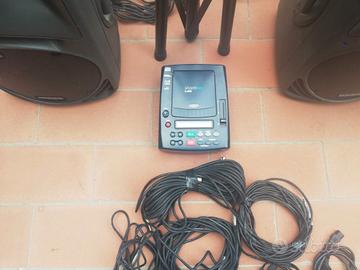 SRM450-la prima e unica portatile attivo diffusore a 2 vie con a bordo bi-amplificazione, crossover attivi, tempo di correzione e rinomata qualità del suono Mackie. Più lettore CD, 3 aste della PROEL e cento metri di cavetteria con varie riduzioni di collegamento mixer come da foto.